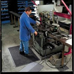 M+A Matting StepWell Shoe Sanitizing Mat 3/8" Thick 3′ x 7′ Gray with Yellow Caution Chevron