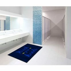 M+A Matting Sanitize Your Hands – Carpeted Message Mat 3/8" Thick 2′ x 3′ Navy Blue/Black