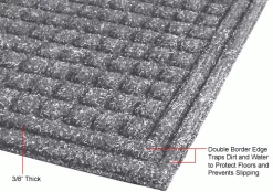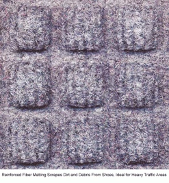 Heavy-duty, reinforced matting scrapes debris from shoes and withstands heavy commercial traffic. Double border edge traps dirt and water to protect floors and prevent slipping. Made from a rugged, fast drying blended fiber to dry quickly, resist fading and stains, and last for years indoors. It’s backed with a reinforcing heavy-duty rubber to grip floors without creeping. Entrance matting measures 3/8″ thick.