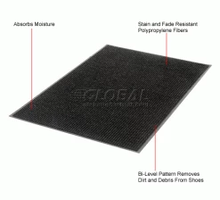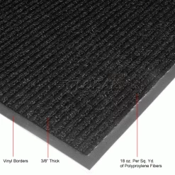 Look of fine carpeting in a hi-lo rib pattern with outstanding durability. 3/8″ thick 18 oz./sq. yd. 100% polypropylene fiber is bonded to a heavy duty slip and stain resistant vinyl base. Scrapes dirt and grit off shoes, removes moisture. Use indoor and out.