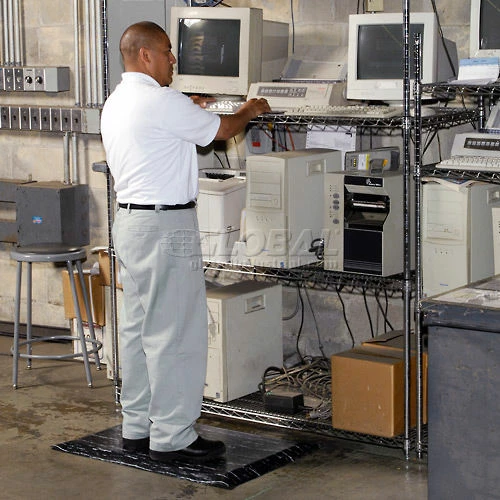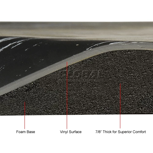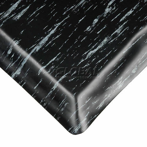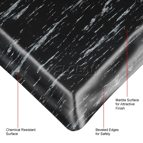 Provides comfort and increased productivity. Perfect for dry, high traffic areas. The durable yet flexible marbleized rubber surface is bonded to an extra resilient, double thick sponge base. Resists abrasion. All edges are safety beveled.