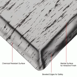 Provides comfort and increased productivity. Perfect for dry, high traffic areas. The durable yet flexible marbleized rubber surface is bonded to an extra resilient, double thick sponge base. Resists abrasion. All edges are safety beveled.