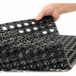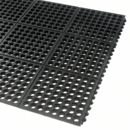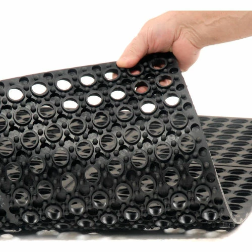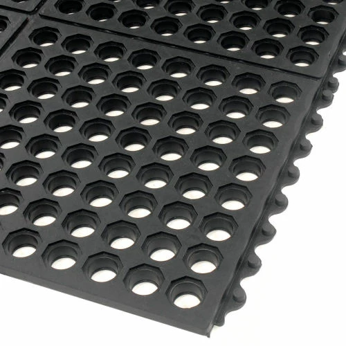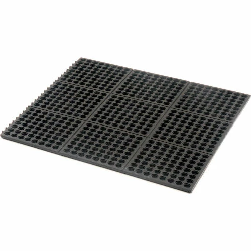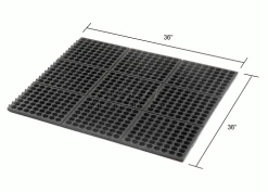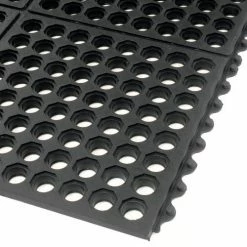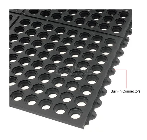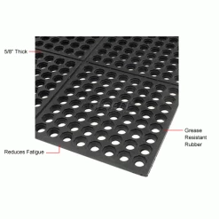 Resilient, grease resistant rubber mats greatly reduce fatigue from long standing jobs. Customize to both width and length with built-in connectors.