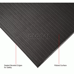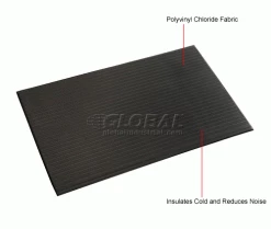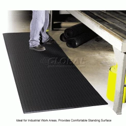 Perfect for a variety of light and medium-duty work environments such as industrial workspace, shipping and packaging areas, mailrooms, etc. Fabricated of polyvinyl chloride closed cell sponge to provide a comfortable standing surface. Helps to insulate against cold and reduce noise and breakage. Ribbed surface and sealed, beveled edges on 3 sides improve safety.