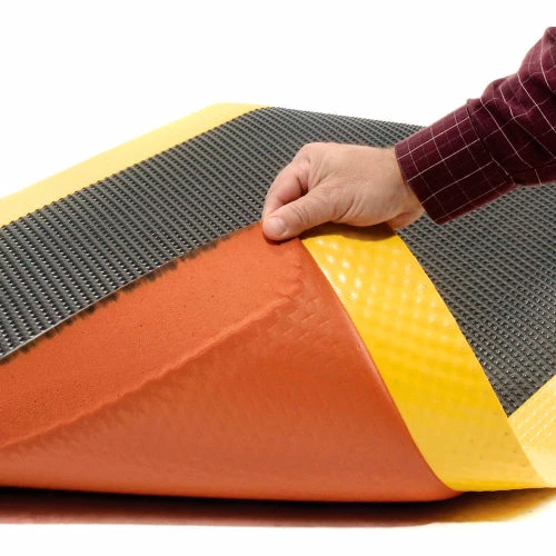 This top quality matting features a 3 Year Limited Warranty against wear. Measures 11/16″ thick, its durability and comfort come from premium 1/2″ thick closed-cell foam topped with a rubberized surface fights fatigue with super soft cushioning and superior resilience. Rubberized, pyramid textured surface withstands heavy traffic and most chemicals and provides exceptional wet or dry traction. Includes safety beveled edges.