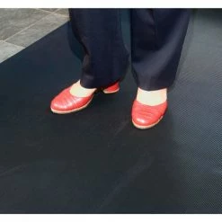 Corrugated ribbed surface helps prevent slips and falls and resists water and chemicals. Won’t curl, shrink or separate, protecting personnel and floors. Easy to clean 1/8″ thick black rubber.