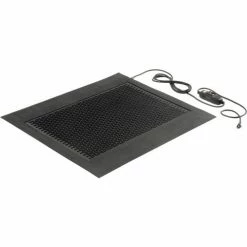 This outdoor heated mat is great for entrances, ramps, loading docks, hospitals, nursing homes, hotels and more! 1/2″ thick entrance mat is made with reinforced butyl rubber that is UV stabilized for heavy outdoor use. 120V, 260 Watts (40 watts/sq.ft) heated mat operate for only pennies a day to offer an effective alternative to embedded systems. Electrically operated heating element is placed between non-slip rubber surfaces. Measures 28″W x 36″L. Includes 15’L power cord. Meets IEEE 515.1 standards. ETL and CETL listed.