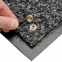 Protects electron equipment from static charges. Ideal for heavily trafficked indoor areas including computer workstations, cashier’s stations, offices, service counters, schools and libraries. 5/8″ thick carpet features conductive fiber top with vinyl backing that grips floors. Resists up to 109 ohms. Includes grounding cord.