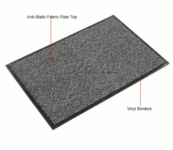 Protects electron equipment from static charges. Ideal for heavily trafficked indoor areas including computer workstations, cashier’s stations, offices, service counters, schools and libraries. 5/8″ thick carpet features conductive fiber top with vinyl backing that grips floors. Resists up to 109 ohms. Use with grounding cord (sold separately). Snap for ground connection not included.