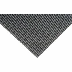 Fine line corrugations provide a slip resistant surface while removing dirt and debris from shoes. Protects floors and carpets against weathering. Ideal for use in high traffic areas including hallways and in-plant aisles. 1/8″ thick black mats are made with all rubber with a corrugated top and non-skid back.