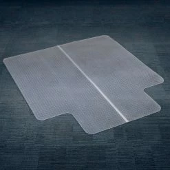 Overall dimensions of 36″ width and 48″ long includes a 20″ x 10″ lip; deluxe thickness 0.170 of an inch; beveled edge, designed for use on carpet (including padding) up to 1″ thick; The exclusive AnchorBar® cleat system replaces sharp pin cleats making it easier to handle the mat; Using a series of staggered, perpendicular bars, the cleat system “anchors” the mat as securely as traditional cleats yet is gentle on the carpet and fingers. All ES Robbins Office Chair Mats are proudly made in the USA.
