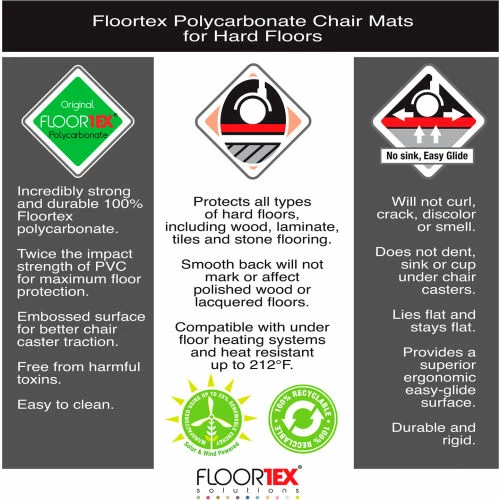 - Tinted polycarbonate plastic mat for eye-catching and incredibly durable floor protection around your computer or office desk