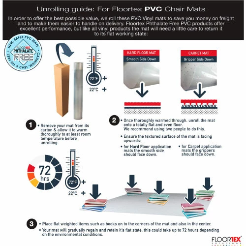 - All of Floortex’s PVC/ Vinyl mats are recyclable, made with up to 25% recycled material as well as being made using 25% renewable energy