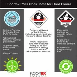 - Floortex’s smooth back plastic chair mats can be a protector of a variety of hard floor, including; vinyl, hardwood, laminate, stone, wood, tiles and concrete flooring