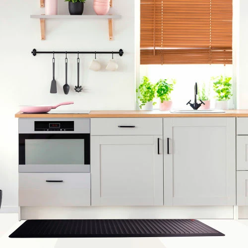 - Ergonomic standing surface, includes multiple ribbed design features which encourage regular foot movement and changes in standing position that stimulate blood flow for reduced fatigue