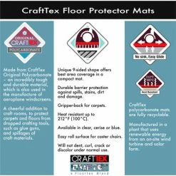 CraftTex clear floor mats are designed to offer a large area of barrier protection for low/medium pile carpets – up to 1/2″ deep. Made from durable Polycarbonate, with a grippers to help prevent the mat traveling, this mat protects carpet from damage caused by dropped craft equipment, spilled paint, glitter and glue. Easy to wipe clean this protective mat won’t discolor, curl, bend or crack under normal use. Strong and long-lasting, the mat lies flat immediately and provides a waterproof barrier. Providing peace of mind that mess and spillages will be contained. This Polycarbonate mat is 100% recyclable, and is free from PVC and toxins.