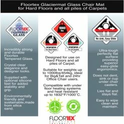 Floortex’s Glaciermat’s are a premium glass chair mat perfect alongside big and tall and executive office chairs. Glaciermat floor mats offer a smart and hardwearing alternative to traditional chair mats. The tempered glass can take weights of up to 1000lbs. This crystal clear glass mat allows flooring to shine through, while offering ultra-tough protection. The flat easy-glide surface offers ergonomic benefits to the office chair user and reduces strain while moving about.