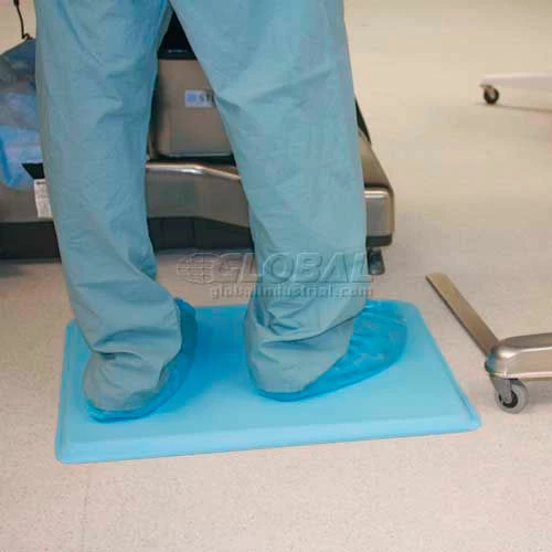 GelPro® Anti-Fatigue Medical Mats are made with a GelPro gel core to relieve fatigue and discomfort during long periods of standing. Anti-microbial, anti-bacterial surface is water-resistant and ensures safe friction levels for workers wearing laboratory/surgical booties. Anti-microbial high-traction bottom surface is certified by the national floor safety institute. Mats measure 20″ x 48″. Blue. Non-Returnable.