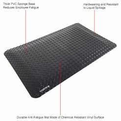 Improve safety in your warehouse, distribution center, or assembly line with the Global Industrial ™ Diamond-Plate Anti Fatigue Mat. Equipped with a chemical-and abrasion-resistant vinyl, the mat’s durable diamond tread plate surface is slip-resistant for added safety. The surface, bonded to a buoyant PVC sponge base, helps to relieve pressure off your feet and lower back when standing for long periods of time. 1 Year Limited Warranty.