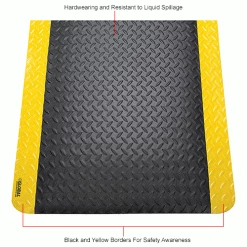 Global Industrial™ Diamond Plate Ergonomic Mat 15/16" Thick 4′ x 6′ Black/Yellow Border