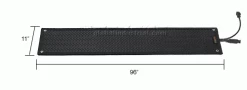 Outdoor stair mats are designed to endure harsh wear in winter seasons. Built with non-slip, UV protected rubber making it ideal for outdoor use. Stair mats include 3/8″ diameter grommet holes in every corner to secure mat to the surface. The mats are made of an electrically operated heating element sandwiched between two protective surfaces of non-slip rubber, making the mats as durable as automobile tires and wear resistant. Plugs into any standard outlet using a GFCI protected, 6’L power cord (sold separately). Each stair mat is 11″D x 1/4″ thick. Each stair mat is designed with watertight 18″L connector cables enabling it to connect to additional stair mats. Can connect up to 12 amps on a single outlet. Mats maintain an average temperature of 40 degrees above the ambient temperature. Turn the mat on before the snow begins to fall. The mats will melt snow at an average rate of approx. 2″ per hour. 2 Year Limited Warranty.
