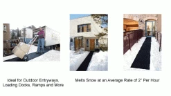 Heated entrance mats are ideal for outdoor entryways, loading docks, handicap ramps and more in the winter season. Built with non-slip, UV protected rubber making it ideal for outdoor use. Entrance mats include 3/8″ diameter grommet holes on each side (approx. every 3 feet) to secure mat to the surface. The mats are made of an electrically operated heating element sandwiched between two protective surfaces of non-slip rubber, making the mats as durable as automobile tires and wear resistant. Plugs into any standard outlet using a GFCI protected, 6’L power cord. 1/4″ thick overall. Mats maintain an average temperature of 40 degrees above the ambient temperature. Turn the mat on before the snow begins to fall. The mats will melt snow at an average rate of approx. 2″ per hour. 2 Year Limited Warranty.
