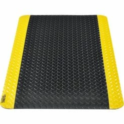 Global Industrial Diamond Plate Ergonomic Mat 15/16" Thick 2′ x 3′ Black/Yellow Border