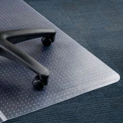 This sturdy, vinyl mat from Interion® By Global Industrial will help prolong the life of valuable flooring by protecting against chair caster wear and tear. Any chair user will be able to maneuver their chair easily and effortlessly, as this mat withstands heavy traffic and features an anti-skid textured top. Mat underside has anchor points to keep mat firmly positioned on carpeted surfaces. This chair mat is ideal for low pile carpet up to 1/4″ thick, including padding.