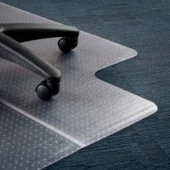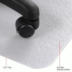 This versatile chair mat immediately unfolds for instant use right out of the box. The ability to fold the mat, reduce its size and easily move it from one are to the next is advantageous for workspaces that change or move. This sturdy, vinyl mat from Interion® By Global Industrial will help prolong the life of valuable flooring by protecting against chair caster wear and tear. Any chair user will be able to maneuver their chair easily and effortlessly, as this mat withstands heavy traffic and features an anti-skid textured top. Mat underside has special anchor points that will keep the mat firmly positioned on carpeted surfaces. This chair mat is ideal for low pile carpet up to 1/4″ thick, including padding.