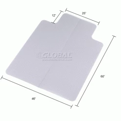 Chair Mat Dimensions: 46″W x 60″L. 1/10″ thick with a 25″ x 12″ lip. Straight Edge.