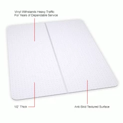 Chair Mat Dimensions: 36″W x 48″L. 1/10″ thick. Straight Edge.
