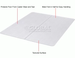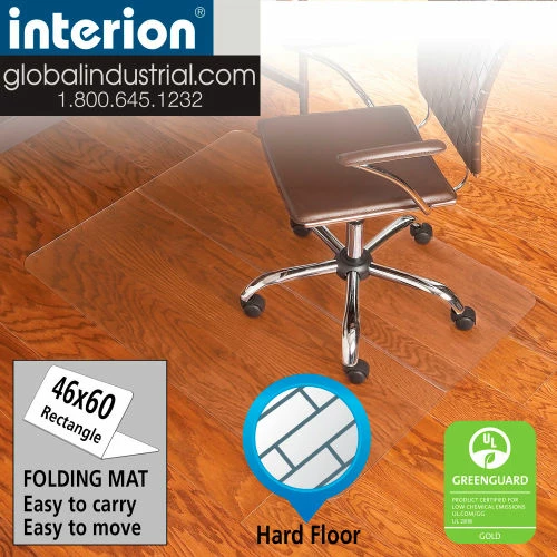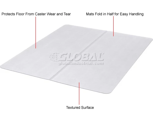 This versatile chair mat immediately unfolds for instant use right out of the box. The ability to fold the mat, reduce its size and easily move it from one are to the next is advantageous for workspaces that change or move. This sturdy, vinyl mat from Interion® By Global Industrial will help prolong the life of valuable flooring by protecting against chair caster wear and tear. Any chair user will be able to maneuver their chair easily and effortlessly, as this mat withstands heavy traffic and features an anti-skid textured top. This chair mat is ideal for use on laminate, wood, tile and other hard floor surfaces.