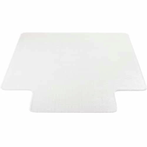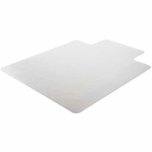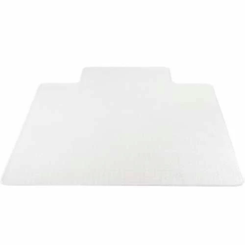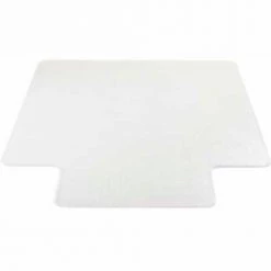 45″ wide x 53″ deep clear rectangular Office Chair Mat will extend the life of your carpet by spreading out the pressure from your chair casters. Will also reduce fatigue by allowing easier rolling across your workspace with less back and leg strain. Designed for use on medium plush 1/2″ thick or less carpets including padding.
