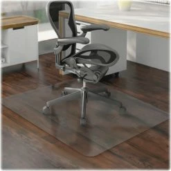 Office Chair Mat is designed for hard floors including wood, vinyl and tile. Design features vinyl construction and a straight edge. Office Chair Mat protects floors from chair scuffs and caster damage.