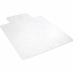 Office Chair Mat with a lip features a nonstudded design made specifically for hard floor surfaces. Sturdy material protects wood, tile and vinyl flooring from wear and tear caused by chair casters. Easy-glide rolling surface provides effortless mobility. Lightly textured top surface is slip-resistant and scuff-resistant. Design also includes a straight edge. While the Free and Clear formula produces an exceptionally clear vinyl mat that is nonphthalate, noncadmium and BPA-free.