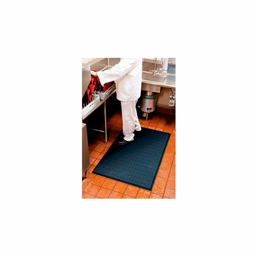 Complete Comfort is an ergonomically superior anti-fatigue mat. 5/8″ thick, 100% closed-cell Nitrile Rubber construction. Anti-microbial treated, slip resistant surface is grease, oil and chemical resistant. Perfect for wet or dry areas. Textured surface for superior slip and skid resistance. Beveled edges for easier floor to mat transition. Light weight and easy to clean. Static Coefficient of Friction – Dry is 0.88, Wet is 0.79. 3′ x 10′. With Holes.