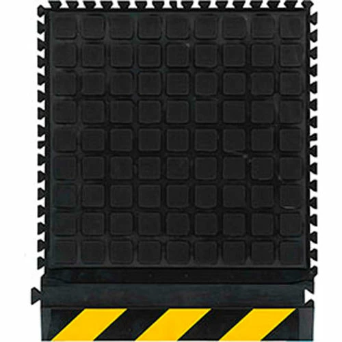 Newly designed all-rubber locking mechanism provides extra strength at the connection point for any repeated stress on the connection points.for dry areas. A nitrile rubber top surface has excellent chemical and oil resistance. The closed cell nitrile rubber cushion provides long lasting comfort and outstanding anti-fatigue qualities . Welding safe. Nitrile Rubber surface is molded to the cushion backing (not glued) so the surface will not delaminate. Rubber surface remains flexible for the life of the product and will not curl or crack. Borders available in black or yellow striped.Electrically conductive and certified slip resistant by the National Floor Safety Institute(NFSI). Recommended for distribution, manufacturing and retail facilities and for picking lines, assembly lines, work stations, check-out stations and more. 3/4″ thickness offers durable wear.