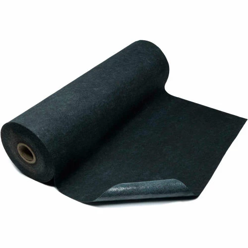 Polyester moisture barrier film keeps liquids from soaking through to the floor. Constructed from durable Eco-friendly PET fiber that dissipates water quickly for fast drying time and is easy to clean. Anti-microbial treated for protection from odors. Quick and easy to install. Cut individual mats as needed from roll with cutting knife included. Will perform up to 4 months under normal use but should always be replaced when it shows signs of wear or damage from heavy use. Always replace after 4 months regardless of traffic, leaving longer could cause adhesive to transfer.