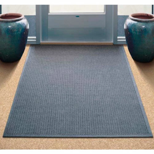 WaterHog Fashion Entrance Mats are made of 100% super-absorbent polypropylene for long lasting durability. The rubber reinforced face nubs and waffle design provide bi-level, crush-proof scraping action. Raised water dam border traps dirt and water to help keep debris off floors and carpets. The border also features the same 100% polypropylene fiber system as the mat surface. Good for indoor and outdoor use. The SBR rubber backing contains 20% recycled material. Certified slip-resistant by the National Floor Safety Institute. Med Gray 6′ x 8′.