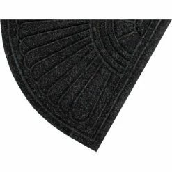 High performance, safety and attractive appearance. Waterhog™ mats are a 24 oz. polypropylene reinforced and backed with rubber. Construction includes a water dam feature that collects and holds water and bi-level texture to remove maximum dirt from shoes. Designed for indoors or out with crush resistant pile for extended life and superior anti-static properties. Cleated rubber back prevents slipping. Stylish patterning with fashion borders. Solution dyed to resist fading. Vacuum or hose clean. This style is a half oval shape. Measures 3/8″ thick.