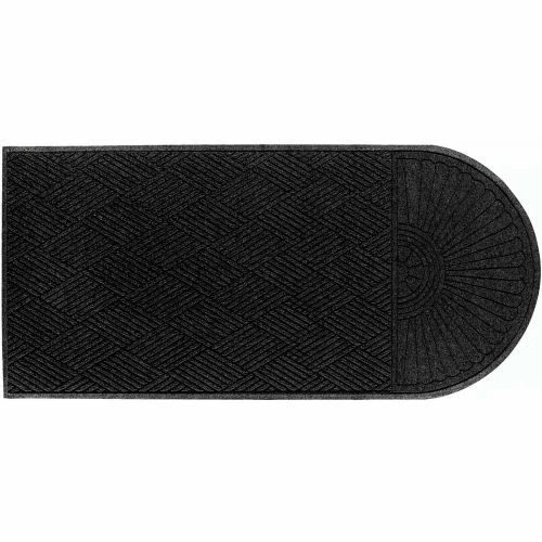 High performance, safety and attractive appearance. Waterhog™ mats are a 24 oz. polypropylene reinforced and backed with rubber. Construction includes a water dam feature that collects and holds water and bi-level texture to remove maximum dirt from shoes. Designed for indoors or out with crush resistant pile for extended life and superior anti-static properties. Cleated rubber back prevents slipping. Stylish patterning with fashion borders. Solution dyed to resist fading. Vacuum or hose clean. This style features one oval and one square end. Measures 3/8″ thick.