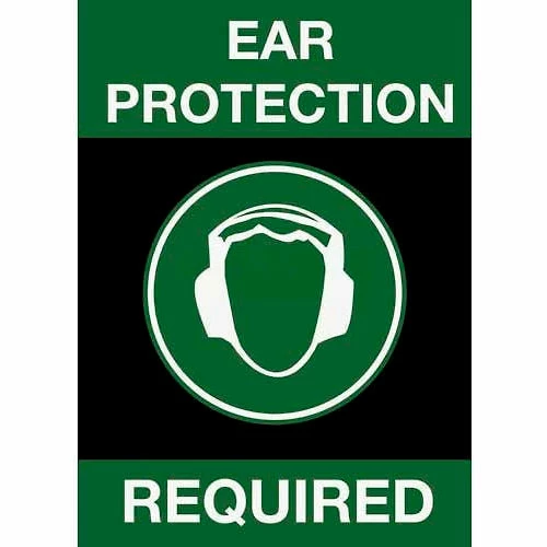 NoTrax® Ear Protection Required Safety Message Mat 3/8" Thick 4′ x 6′ Black