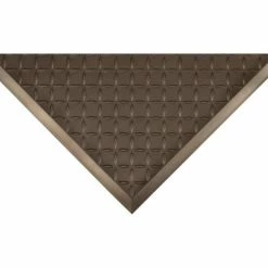 Ergo Comfort is a lightweight yet comfortable and durable anti-fatigue mat made from high quality polyurethane. The modern diamond-top surface designed offers added comfort and the micro-celled foam center is soft yet supportive. A durable thick outer polyurethane skin provides protection against wear. Closed cell polyurethane foam construction ensures that the mat will not absorb liquids and provides insulation from cold floors. The surface is stain and chemical resistant and cleans easily with common detergents and water. Beveled on all four sides. Eco-friendly polyurethane blend does not contain hazardous chemicals, plasticizers, phthalates or lead-based colors. Extremely light-weight, designed for ease of handling in areas where mats are regularly moved for cleaning. For use at reception counters, cashiers stations, assembly lines, workstations, packaging areas, laboratories, cooking lines, food prep stations, dishwashing stations, bar areas and service counters. 5/8″ Thick.