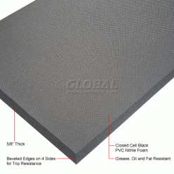 These lightweight anti-fatigue mats can be moved regularly for cleaning in cooking lines, service counters and food prep stations. Antifatigue mats are made of a closed cell black PVC Nitrile foam blend that is resistant to grease, oil, animal and vegetable fats. Ideal for use in areas where occasional overspray and dripping occur; including dishwashing stations and bar areas. 5/8″ thick safety mats have beveled edges on all 4 sides to help reduce trip hazards. These safety mats are easy-to-clean with a mild degreaser and hose; dishwasher safe. Meets or exceeds ASTM standards and passes Flammability FMVSS302 test.