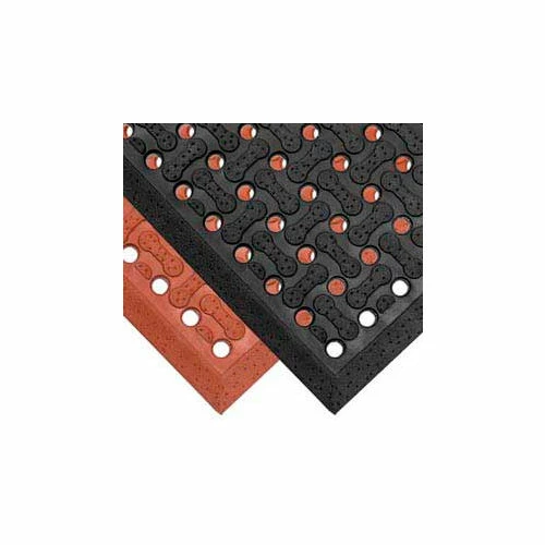 This Rubber Anti-Fatigue General Purpose Drainage Mat is for use in general purpose applications. Reversible for extended life. Molded-in beveled edges to reduce trip hazards and allow for cart traffic. Lightweight for easy handling and cleaning. Drainage system removes liquid and debris from worker platform. Black finish. 5/8″ thickness. 72″L x 48″W overall.