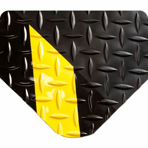 Global Industrial Diamond Plate Ergonomic Mat 15/16" Thick 3′ x 12′ Black/Yellow Border