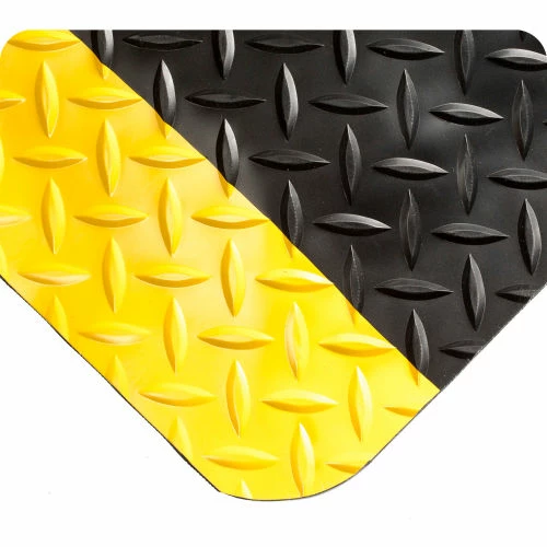 Global Industrial Diamond Plate Ergonomic Mat 15/16" Thick 4′ x 6′ Black/Yellow Border