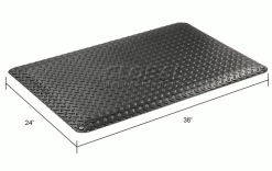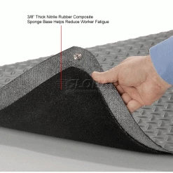 from workers to ground. 3/8″ Nitrile rubber composite sponge base reduces workers fatigue. 3/16″ vinyl Diamond Plate top
