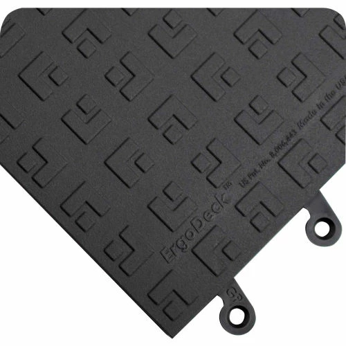 ErgoDeck 598 Max GP Design-Black-Gone are the days of having to choose between comfort and customization. Introducing a modular tile that takes flexibility, performance and safety to the max – ErgoDeck MAX. ErgoDeck Max with patented LockSafe technology holds secure but can be taken apart and reconnected on demand. This revolutionary product utilizes a universal edging system for simple configuration and installation. Each section features counter sunk holes for semi-permanent installations and traction bars for added slip prevention. ErgoDeck Max carries a Limited-Lifetime Warranty. Sold in case quantities, 10 per case