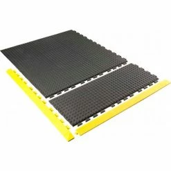 Global Industrial Diamond Plate Ergonomic Mat 15/16" Thick 3′ x 12′ Black/Yellow Border